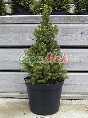 Ель колючая Kaibab (Picea Kaibab). Благодаря стройности кроны эта ель торжественна и строга. Её обычно сажают в парадной зоне сада. Достигая высоты 10-15 метров, она сохраняет правильную ярусно-пирамидальную форму без подсыхания нижних ветвей. Ветви мощные, не ломаются под тяжестью мокрого снега. Хвоя имеет оттенки от зеленого до серо-голубого. Ежегодный прирост 15-25 см. Форма кроны в молодости асимметричная, позднее ширококонусовидная, с очень густо расположенными ветвями. Ветви жесткие, отрастающие под прямым углом от ствола. Хвоя серебристо-голубая, колючая, густая, слегка серповидная, 10-12 мм длиной. Корневая система поверхностная. Прекрасно переносит пересадку во взрослом состоянии. В молодом возрасте поддается стрижке и образует непроходимые живые изгороди. Одно из главных достоинств Ели колючей то, что она не страдает от весенних заморозков и солнечных ожогов, хорошо мирится с высокими летними температурами, светолюбива. Зона зимостойкости: 4 (-35 ° С).