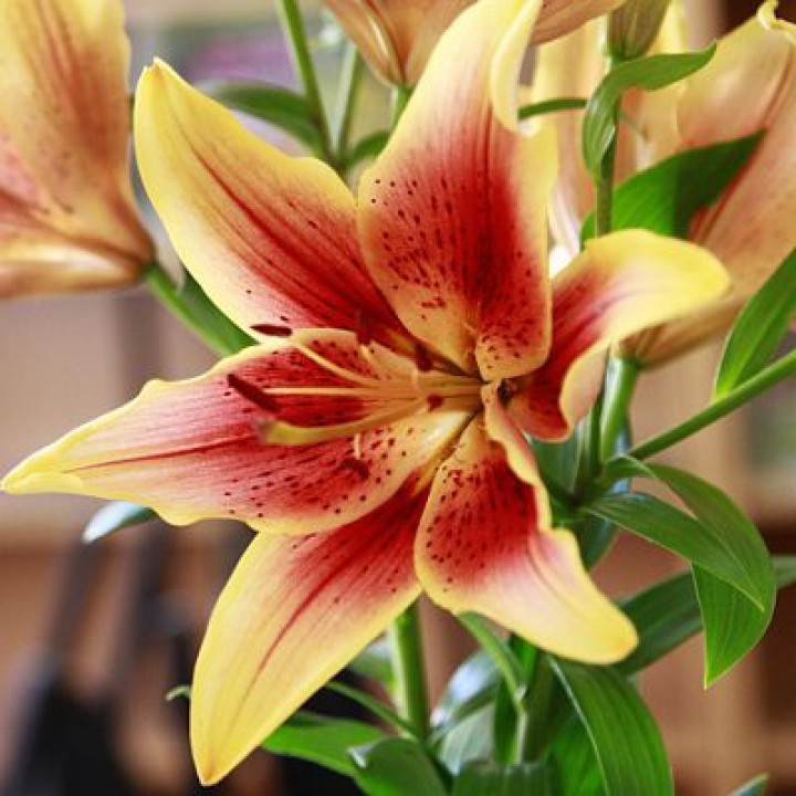 Высота растения 110 см. Оранжево-красные цветки с бордовым крапом приобретают наиболее яркую и нарядную расцветку на солнечных участках. Они хорошо стоят в срезке и обладают приятным ароматом. Цветет этот сорт в июле-августе. Выращивание оа-гибрида не доставит особых хлопот. Важно учесть, что Лилия ОА-гибрид Фест Краун не любит излишней влажности.