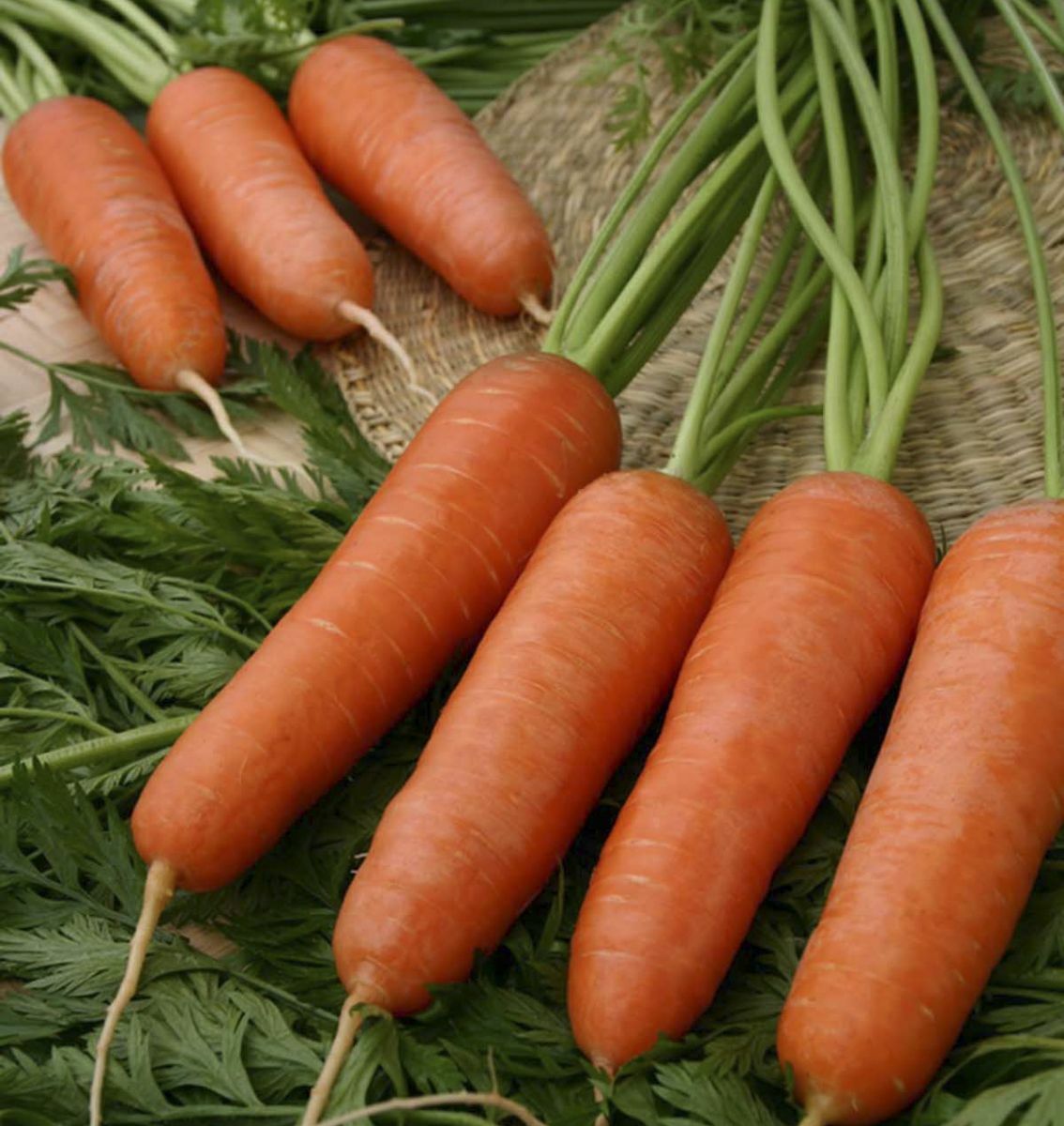 Морковь Karini - поздний. Листья длинные, зеленые и светло-зеленые, среднерассеченные. Плоды короткие, конические, заостренные, с оранжевой кожурой и сердцевиной, массой 95-160 грамм, отличных вкусовых качеств.
