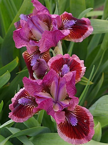 Рассада ириса Cat`s Eye – это карликовый сорт с насыщенной окраской и обильным цветением. Нижние доли (фолы) окрашены в темные вишнево-бургундские тона, и окружены широкой лилово-розовой каймой. Верхние доли (стандарты) - лилово-розовые с тонкими фиолетовыми прожилками. Бородки - ярко-сиреневые, опушенные белым. Высота цветоносов до 38 см. Аромат сильный. Благодаря своей уникальной темно-розовой расцветке, сорт получил множество наград. Становится лучшим украшением сада и ярким бордюром для садовых дорожек.