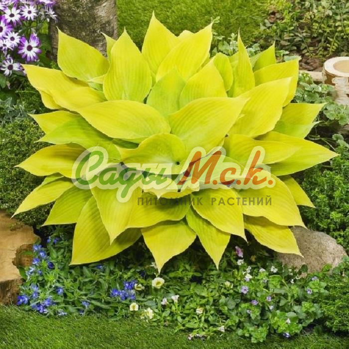 Хоста Аugust Mооn – это сорт-хамелеон, для которого характерно в течение всего вегетативного сезона показывать себя в разном цвете. Весной она салатная, летом ее листовые пластины желтеют. Но особенно нарядно смотрится многолетник в осенний период, когда приобретает светящуюся золотистую окраску. У растения большие, круглые, с острым кончиком и волнистым краем листовые пластины, сильно жатые и морщинистые. Такая «вафельная» структура листа делает его удивительно декоративным, поэтому на таком эффектном фоне бледно-лиловые цветочки практически незаметны. Пышные кусты наиболее роскошно выглядят на солнце. С тенью они тоже готовы мириться, только окраска куста не будет такой яркой.