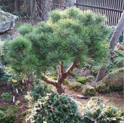 Невысокий плотный многоствольный вечнозеленый кустарник, с полуокруглой формой. Растёт медленно, в возрасте 10-ти лет достигает 1м. Побеги растут вертикально, хвоя короткая, зеленая с сизым налетом. Хвоинки слегка закручены. Для формирования кроны рекомендуется проводить обрезку молодых приростов на 1/2. Высаживать на открытые солнечные места. Почвы легкие, дренированные, не переносит застоя влаги. Редкий сорт сосны!